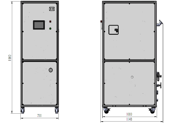 整机尺寸700*1000*1900mm,重750kg。结构坚固,运行平稳。内置40L不锈钢水箱及全封闭管路系统,所有关键部件均通过严苛的压力与密封性测试,确保长期运行无泄漏。