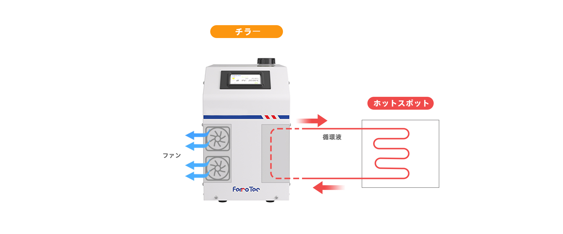独自に研究開発して、様々な異なる冷却能力のチラーおよび温度制御装置、クーリングプレート、エアフローメーターを生産しています