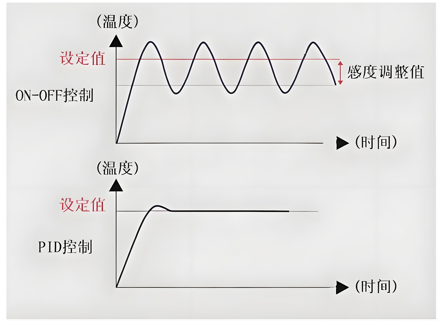 微分控制(D):预测温度变化趋势,提前进行反向调节,有效抑制温度超调和振荡现象。