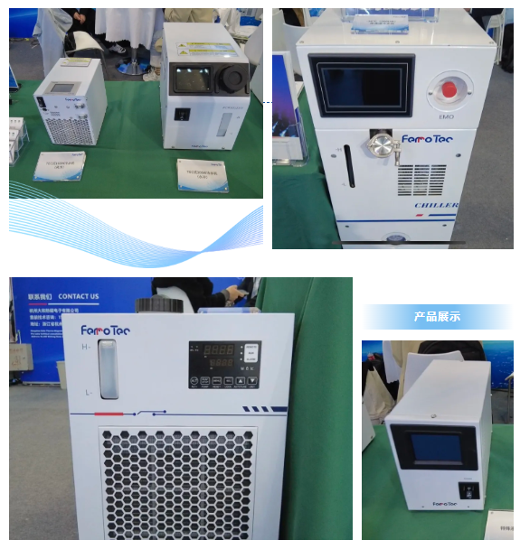 其中自主研发生产的特殊液体系列(热交换器)专控半导体清洗设备及生物医药的化学品,可用于10~60℃碱性溶液、 10~40℃酸性溶液等化学药剂。同时本次展示的用于蚀刻装置冷却的产品,具有定时运转、温度补偿、自我诊断等功能,且噪音小、变频能耗低、制冷效率高,控制精度可达±0.1℃的高品质性能特点,赢得了现场众多客户的赞誉。