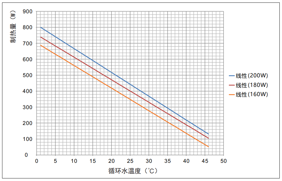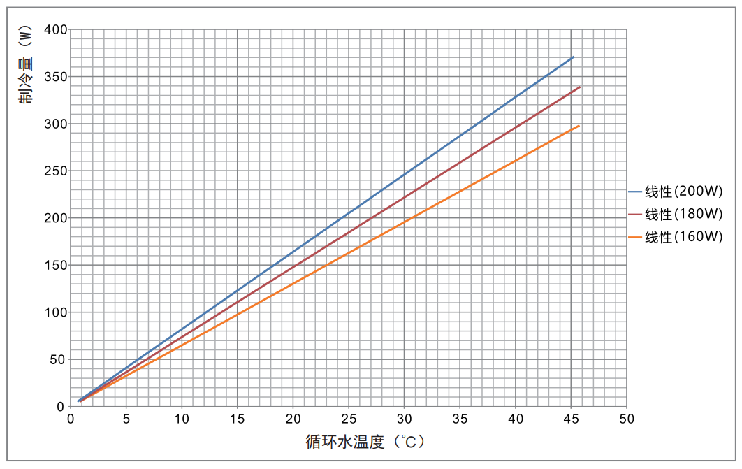 该冷水机制冷量达0–160W,制热量达0–300W,实际性能随温差动态变化,可通过更换风扇或组件优化散热效果。下图为FCTA16101系列全型号性能曲线,你可以根据实际工况选择理想型号。