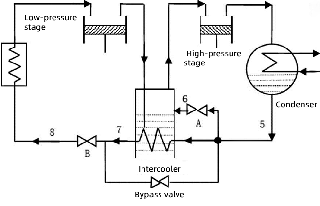Schematic diagram of one-stage throttling intermediate incomplete cooling cycle system