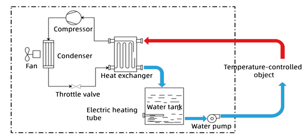 Normal temperature type chiller is usually applied to the working environment above 0℃. It mainly uses the change of refrigerant state to realize the heat transfer (see chiller science classroom No. 1). Compared with low-temperature chillers, room-temperature chillers have significant cost advantages; they can meet most cooling occasions that do not require deep refrigeration, such as food storage and transportation of some medical supplies. It has a wider range of applications and higher safety.
