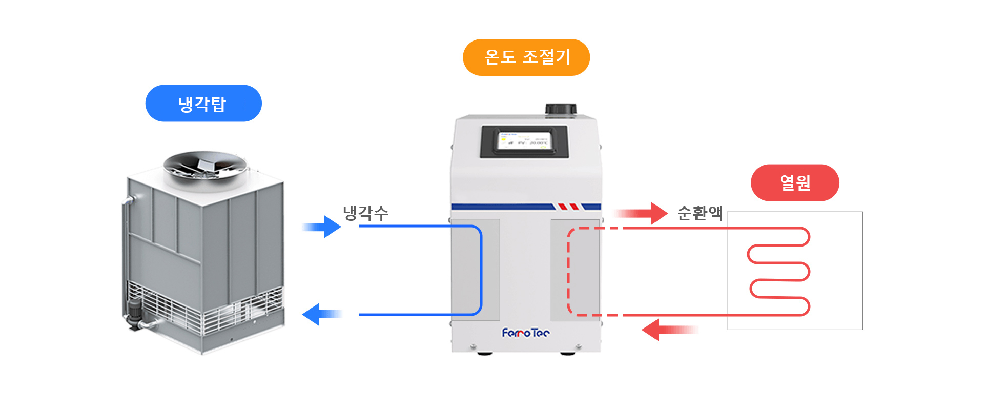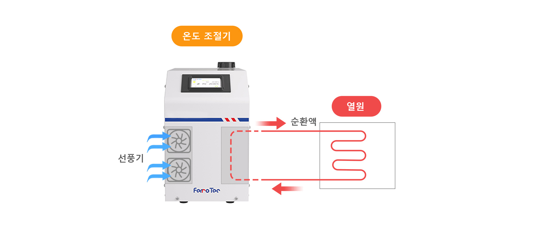 독자적으로 다양한 냉동량의 chiller 냉동기 및 온도조절기, 냉판, 기류기를 연구 개발하고 생산하다